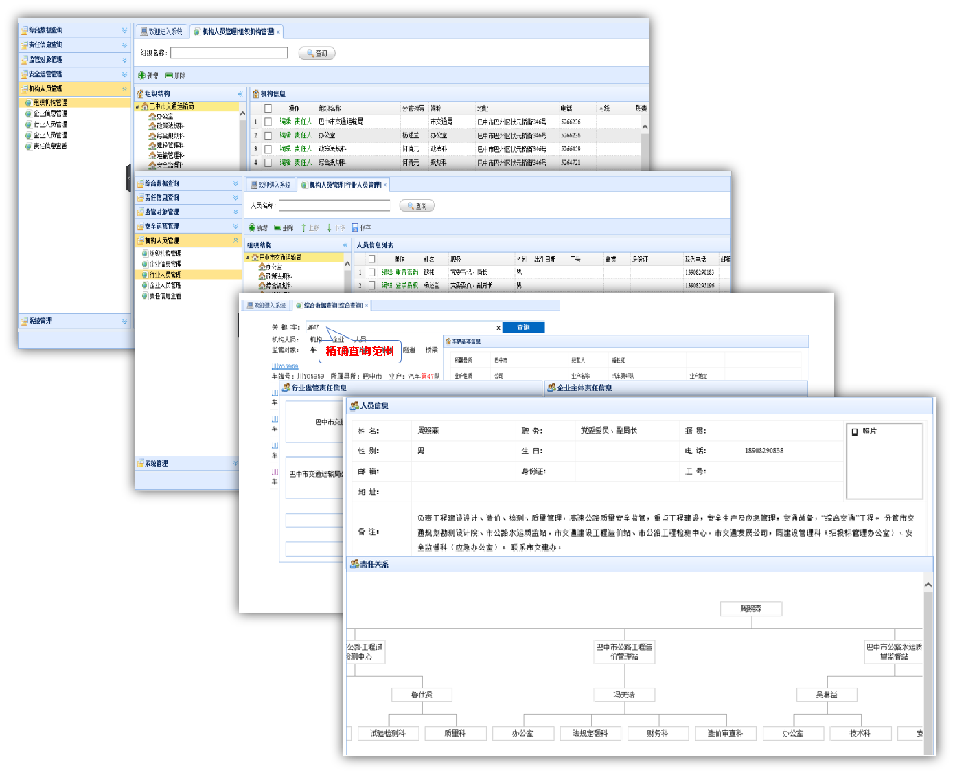 按照"统一平台、信息共享、协同监管"的技术路线,强化顶层设计,系统设计有基础信息采集、查询、审核和管理运行等功能,实现对安全生产运行全过程的实时监控、远程管控和平台化集成,建立起交通运输一体化的安全生产管理体系,同时建立起以安全生产管理为核心,落实"六个坚持"的安全管理思路。
